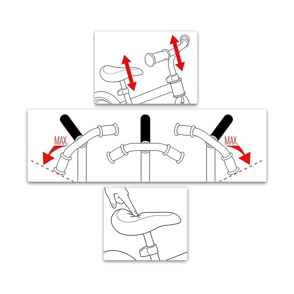 Die Nutzung eines Fahrrads ohne Pedale stimuliert und hilft beim Erlernen des Gleichgewichts, begünstigt den einfachen Übergang zur Nutzung eines Fahrrads mit Pedalen.
